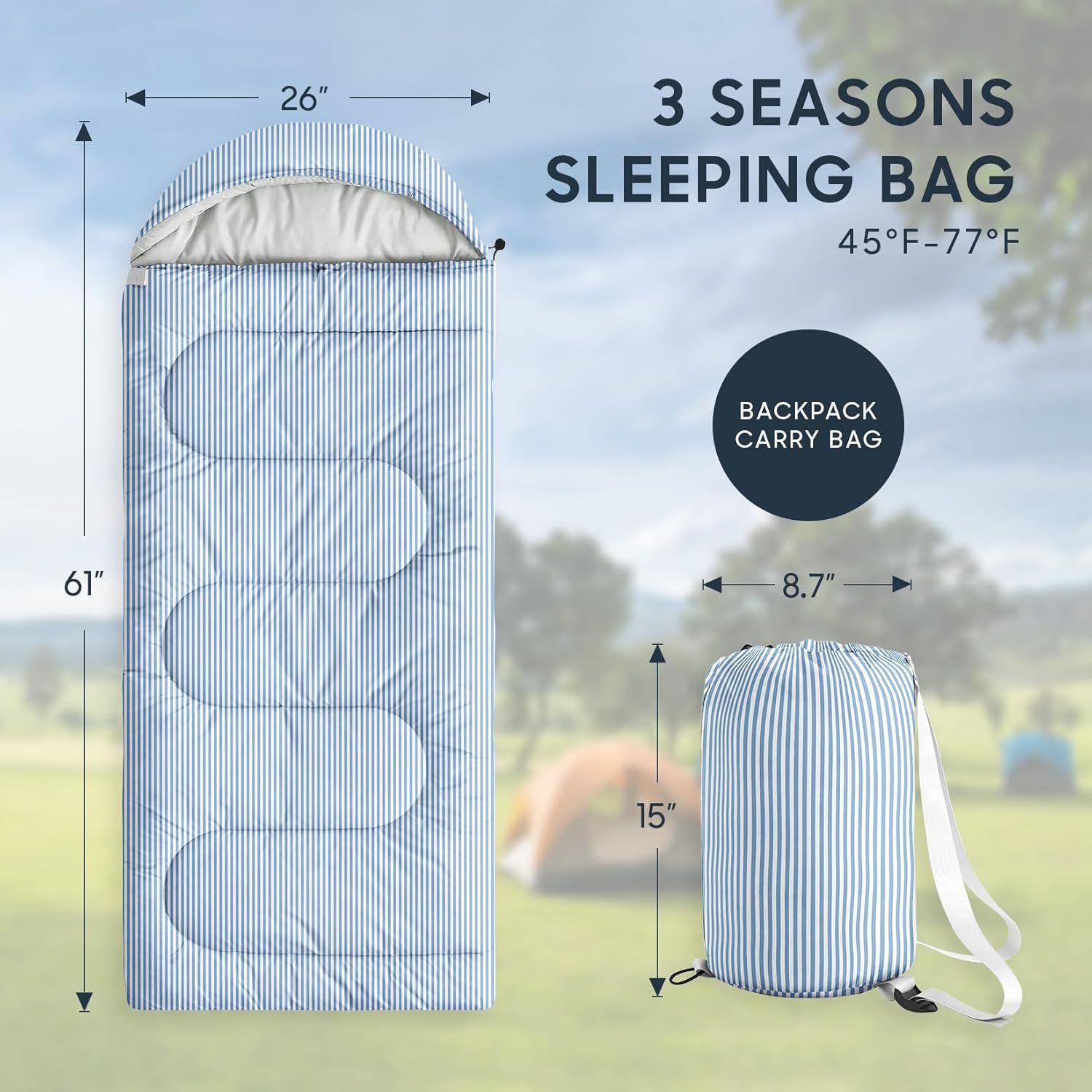 - Ticking Stripe Design: A snug sleeping bag featuring timeless pinstripe pattern; perfect for camping adventures or indoor sleepovers